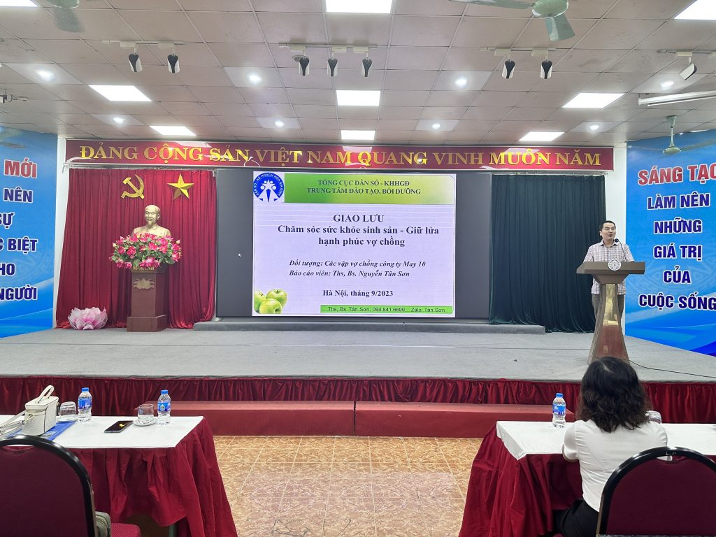 Thực hiện kế hoạch liên tịch số 81/KHLT-TTYT-LĐLĐ ngày 21/4/2023 về tổ chức tuyên truyền chăm sóc sức khỏe sinh sản/KHHGĐ trong CNVCLĐ quận Long Biên năm 2023. 18h00’ ngày 28/9/2023, tại hội trường của tổng công ty May 10, trung tâm y tế quận phối hợp liên đoàn lao động quận tổ chức truyền thông chăm sóc sức khỏe sinh sản/KHHGĐ cho công đoàn viên của tổng công ty May 10.