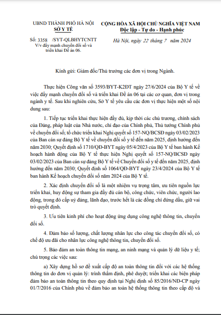 Về việc quán triệt việc thực hiện Kế hoạch số 3268/KH-SYT ngày 17/7/2024 của Sở Y tế Hà Nội