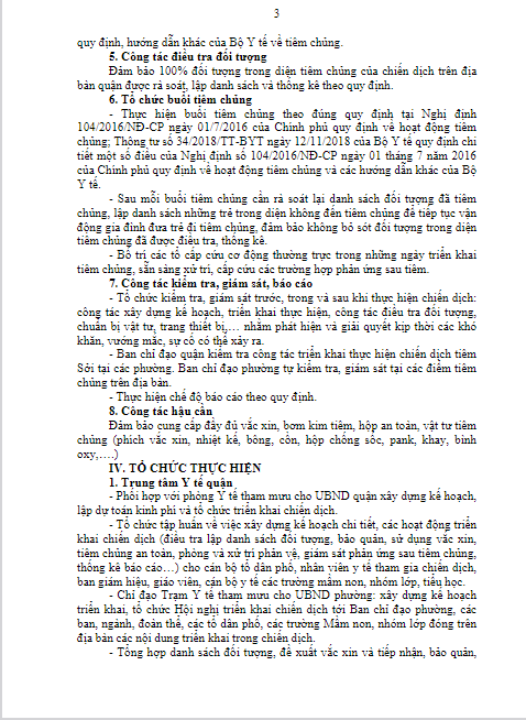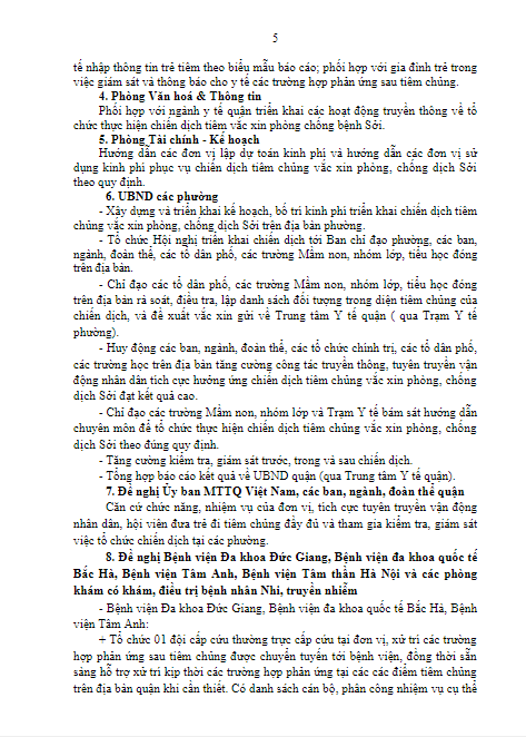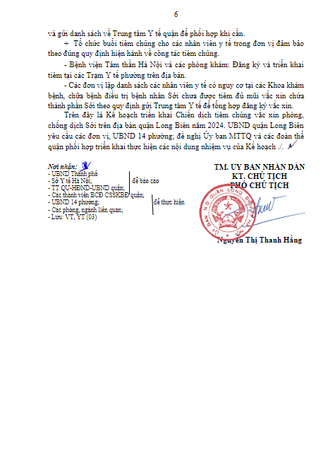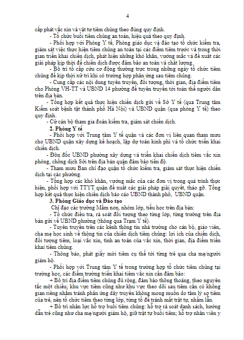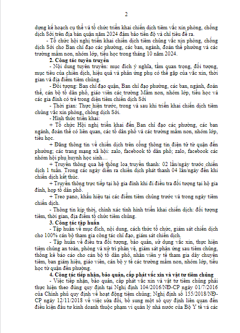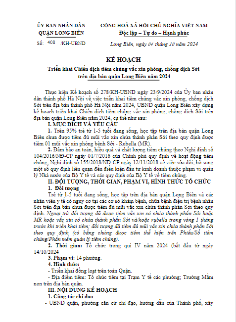 KẾ HOẠCH TRIỂN KHAI CHIẾN DỊCH TIÊM CHỦNG VẮC XIN PHÒNG, CHỐNG DỊCH SỞI TRÊN ĐỊA BÀN QUẬN LONG BIÊN NĂM 2024