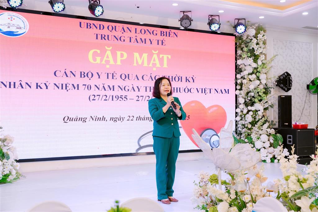 TS.BS Đỗ Thị Thu Hà, Giám đốc Trung tâm Y tế quận Long Biên phát biểu tri ân đến toàn thể đội ngũ cán bộ y tế